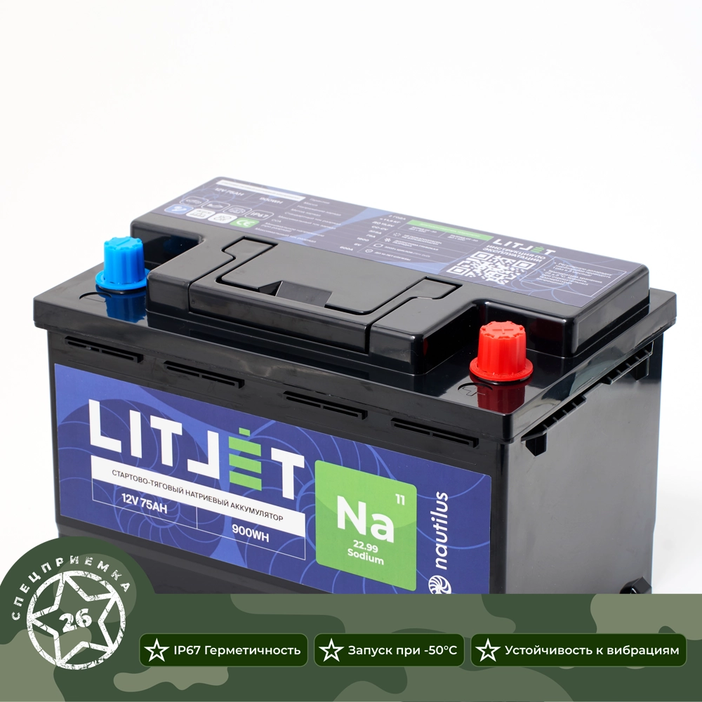 Натрий-ионный аккумулятор 12 В и ёмкостью 75 А·ч, представляет собой один из самых долговечных и надежных источников питания на рынке. Относится к стартово/тяговым натриевым аккумуляторам.