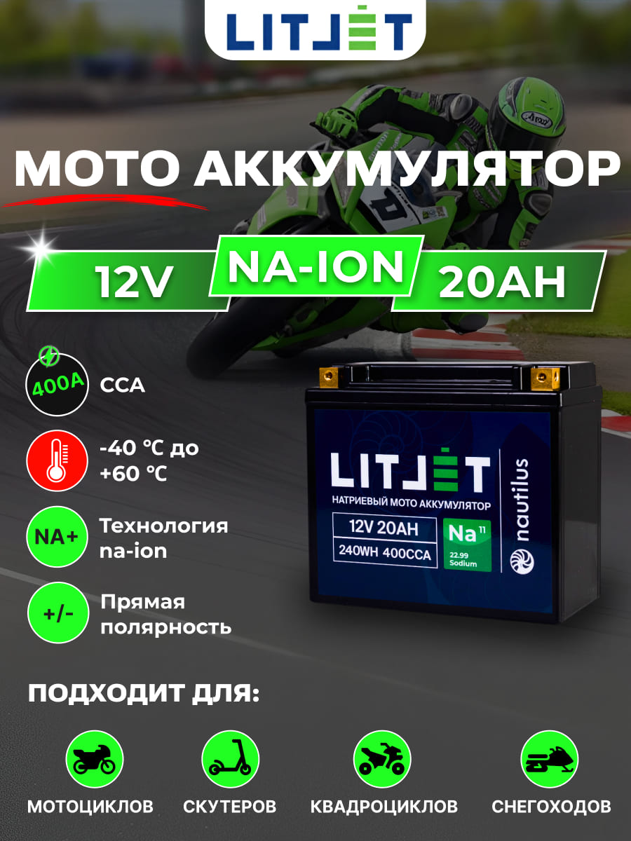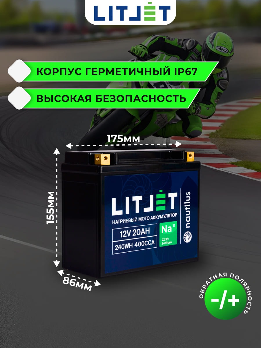Купить аккумулятор стартовый LITJET Na+ 12V 20Ah 240Wh 400CCA YT20 R+ IP67 вы можете позвонив по телефону +7 (499) 521-12-29, оставив заявку на сайте или написав на почту sale@litjet.ru. Наши менеджеры проконсультируют вас по всем возникшим вопросам.